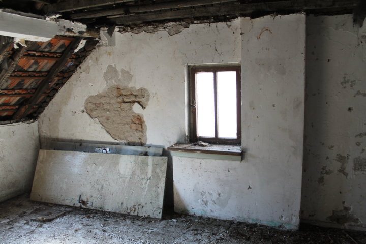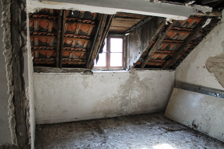 Ergänzend wurden Abbruchsteine im sogenannten „Reichsformat“ aus dem 19. Jahrhundert daruntergemischt. Die Ziegelsteine wurden im Kreuzverband vermauert. Die neuen Traufwände werden mit den Giebelwänden verzahnt und die ursprünglichen Öffnungen (Haustüre und zwei Fenster) mit Stichbögen überspannt. Ein kleines, vorspringendes Gesims bildet heute wieder den Abschluss zur Traufe.